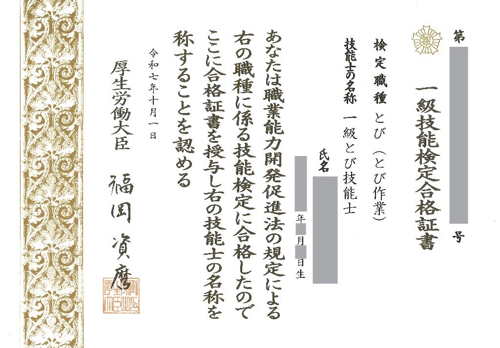 – 1級とび技能士 –