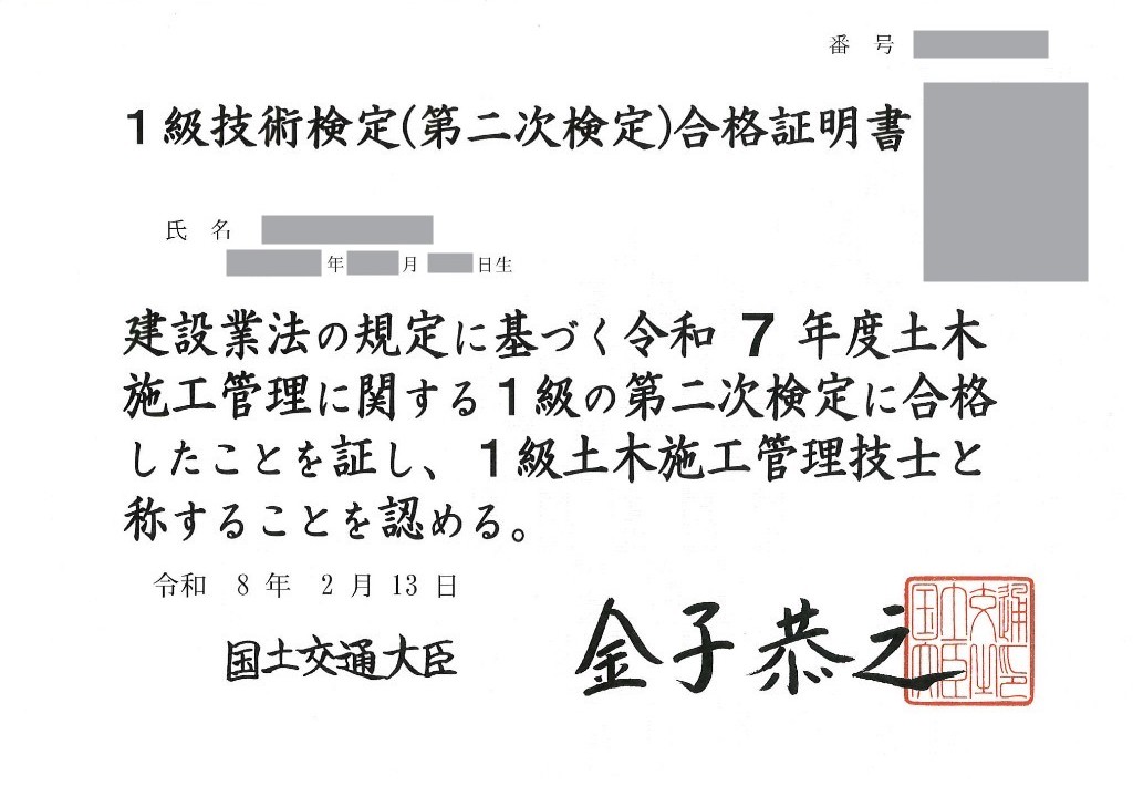 – 1級土木施工管理技士 –
